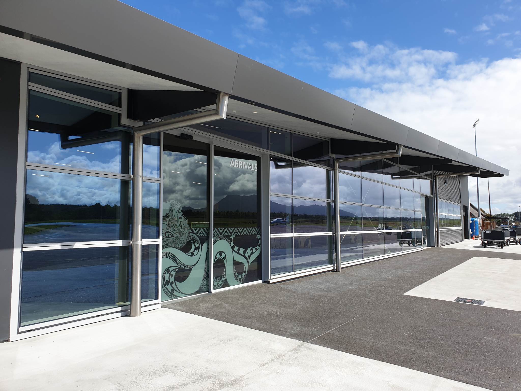 Throughout the new terminal building’s development, local cultural influence and significance were heavily incorporated into the design. Murals and sculptures within the terminal building, represent and celebrate the māori cultural influence of the Taupō area. Notable elements included salvaged rimu logs from Pureroa Forest, a mauri stone from Tauhara Quarry, and interior abodo timber cladding, all sourced from surrounding areas.